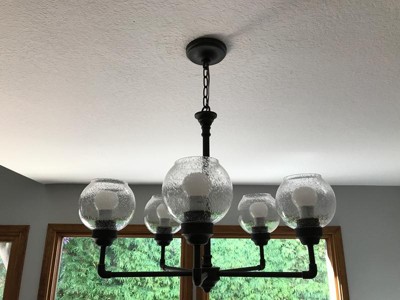 [This review was collected as part of a promotion.] This was so easy to install! I love the bubbles in the globes and the modern flair. this chandelier gives off so much light! Only minor con is I wish it came with the light bulbs :(