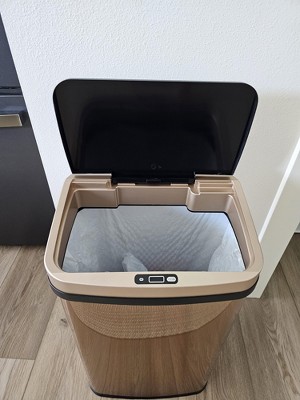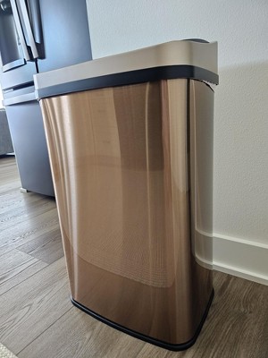 Nine Stars 13.2 gal Motion Sensor Trash Can: Rectangular Shape, Gold Color Stainless Steel Body / With Black Lid
