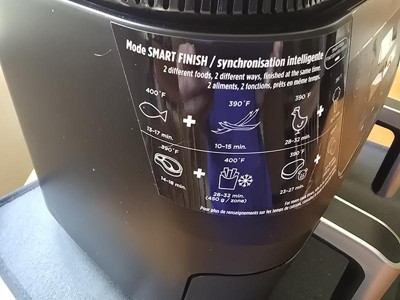 I love the smart finish tech on this item where you can put two items that need different cooking temps and times in the basket but the air fryer will make sure they finish at the same time.