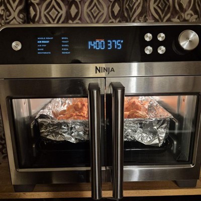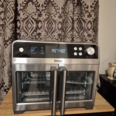 [This review was collected as part of a promotion.] Oh wow! This Ninja French door air fryer is a game changer and doesn't take a long time to make dinner 😉. At first, I thought? It was going to be challenging with the setup and timer like other air fryers, but nope! It's very simple it has different push buttons, setting from air fryer, air roast, toast to dehydrate food. You can even put a whole chicken inside 😁 Which is pretty amazing! It is great if you don't have time to make a full course meal or feel stressed from work to make dinner. Just pop in some chicken wings, fries, prep chicken/ veggies, or anything in the fryer. In 30 to 20 minutes, the food is ready😁 Also! The air fryer inside has four different trays for baking, air fryer basket, toast tray, and tray to add vegetables 😀. Cleaning is easy to clean, or you can put aluminum foil on the trays to make it less messy inside the fryer. This ninja French door air fryer is the best Christmas gift or birthday for anyone who doesn't like to take long to cook. Also! Make sure you have space for your kitchen because the air fryer is half as big as the microwave 😆