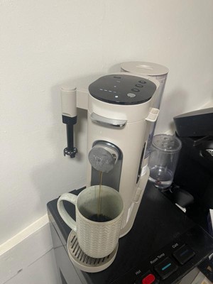 A: No, the Single-Serve Deluxe does not dispense plain hot water. It is designed for brewing coffee and tea using pods or grounds, but it does not have a dedicated hot water function.