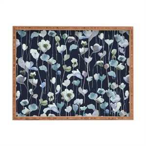 Ninola Design Watery Abstract Flowers Navy Rectangular Bamboo Tray - Deny Designs