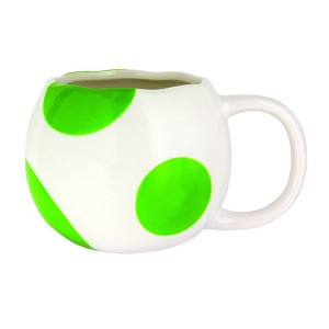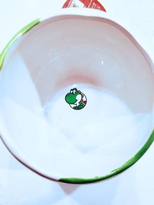 Level up and get this Yoshi Egg Shaped Mug! Featuring a white egg with green dots, this mug is perfect for any Yoshi fan. It even has a smiling Yoshi hiding at the bottom of your drink!