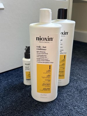 Nioxin Pro Clinical's System Kit 1 is designed for natural, untreated hair with light thinning. Clinically and dermatologically tested, this conditioner is designed to amplify hair texture and strengthen resilience, resulting in thicker, fuller hair.