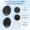 - 3-in-1 high-efficiency filter can reduce particles and smells in your living spaces. effectively improve the air quality for your home. Activated Carbon inside captures household unfavorable Odors & harmful VOCs.