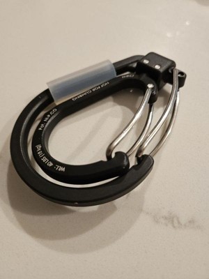 [This review was collected as part of a promotion.] This dual carabiner is a great way to add another smaller bag or water bottle to my pack. Didn't seem to struggle against a decent amount of weight either. I like that you can flip it in and out of the larger carabiner.