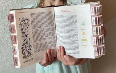 This Bible is great for my kids (ages 5 & 8) and we love all the extra colorful verses and spaces to write. We didn’t use the Bible tabs it came with but got some other ones.