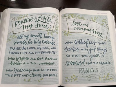 This Bible has truly brought me closer to Jesus ne I am so grateful. I had it on my list and received it for Christmas. The pages are filled with beautiful illustrations incorporating lovely verses. It is just so special and ignites my connection with God! I recommend this Bible to anyone! It is so beautiful it brings me soo much joy!! It is so easy to read my Bible every day now and I have become a better woman because of it!