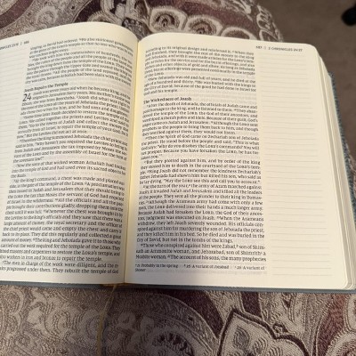 This is not large print. I’m sure it’s a great study bible but I bought it because it was listed as large print.