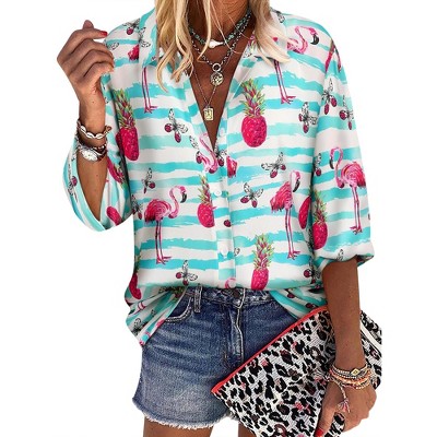 This women's V-neck puff short sleeve hawaiian shirt – the unique closet addition you'll reach for on repeat. Made with a soft, lightweight polyester blend, it keeps you cozy and breathable all day. The flattering v neck pairs with voluminous puff short sleeves, a fun twist on classic hawaiian style, while the relaxed fit suits every shape. Vibrant tropical prints bring that iconic island vibe, making it easy to dress up with trousers for work, down with shorts for beaches, or keep casual with jeans for daily outings, ideal for spring, summer, and mild autumn days.