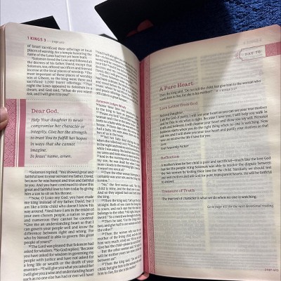 This beautiful women's devotional Bible features a rose and black interior printed on high-quality cream Bible paper.