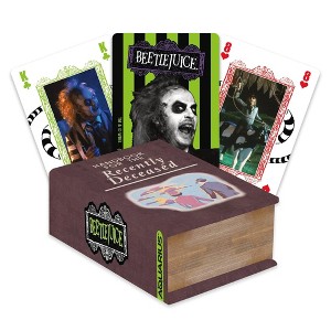 - BEETLEJUICE PLAYING CARDS: Put your luck and smarts to the ultimate test with your fellow fans at your next party or game night with this incredibly entertaining deck of Beetlejuice playing cards packaged to look just like the Recently Deceased book from the movie.