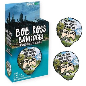 Bandages that make a fashion statement are right here and feature a popular American painter and art instructor that hosted The Joy of Painting - Bob Ross! Turn that frown upside down with these Bob Ross Bandages! Box contains 18 Bob Ross-themed bandages, each bandage measuring 1.3 x 1.7-inches. FDA Approved. Remember, there are no mistakes, just happy accidents! Officially licensed.
