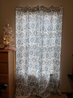 Add intrigue to any room of your home with the watercolar medallion print design of Hastings Curtain Panels by No. 918. Casual textured fabric. Gently filters light while enhancing privacy. Grommet top design allows for easy hanging on a standard curtain rod up to 1.5" in diameter. Machine washable. Panels sold individually. Measure carefully prior to purchase (Image features 2 panels). Sold as individual panels measuring 40" width by 84" length in color denim blue. Measure carefully before selecting your desired size and quantity. Rod not included. Machine wash cold on gentle cycle. Use only non-chlorine bleach when needed. Tumble dry on low heat, using a cool iron as needed.