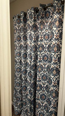 No. 918 1pc 40"x84" Hastings Medallion Print Semi-Sheer Grommet Curtain Panel Denim