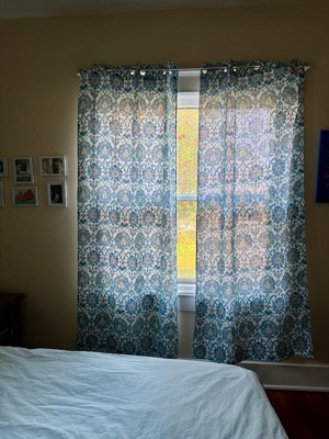 [This review was collected as part of a promotion.] First impression: these curtains are a lot thinner than I was anticipating. Because of that, we are opting to use these during the spring and summer, and switching back to our thicker curtains in the fall and winter to help keep the cold air out. These curtains are definitely more decorative than functional. The pattern is pretty and gives your space a nice focal point, something interesting to look at…almost like artwork. They are pretty translucent, but they still do the job (I can’t see through them when I’m looking in, but I can when I’m looking out). My daughter loves the pattern, so while we initially got these for our master bedroom, we are in the process of putting them in my daughter’s room.