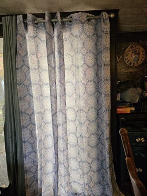 Add intrigue to any room of your home with the medallion print design of Lido Curtain Panels by No. 918. Casual textured fabric gently filters light while enhancing privacy. Grommet top design allows for easy hanging on a standard curtain rod up to 1.5" in diameter. Machine washable. Panels sold individually. Measure carefully prior to purchase (Image features 2 panels). Sold as individual panels measuring 48" width by 84" length in color blue. Measure carefully before selecting your desired size and quantity. Rod not included. Machine wash cold on gentle cycle. Use only non-chlorine bleach when needed. Tumble dry on low heat, using a cool iron as needed.