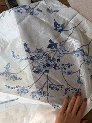 [This review was collected as part of a promotion.] The Sun Zero No 918 Margot Botanical Print Sheer Rod Pocket Curtain Panel is very pretty, was easy to hang, and the size was perfect for my windows. The curtains have lovely shades of blue and a sparkly silver that runs through the panel. I like the curtains, though I do prefer more of a blackout level of coverage. So far, they appear to be well-made and easy to maintain.