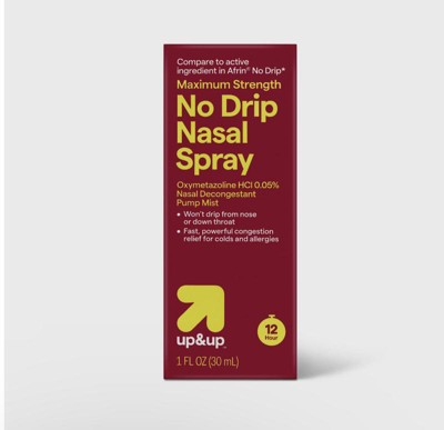 I had a horrible cold and this Up & Up No Drip 12 hour Nasal Spray was a life saver. it immediately work to relieve all my congestion and I could breathe easily again. It works as well as the name brands at a much better price. Highly recommend.