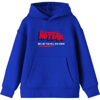 No Fear Skull With Wings Vintage Logo Adult Blue Long Sleeve Hoodie-Medium