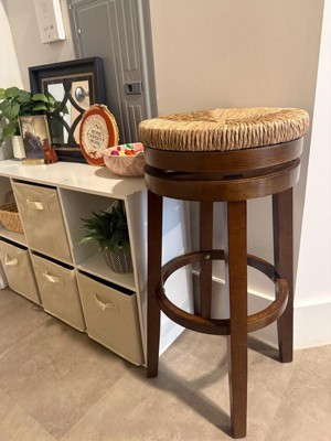Introducing the Noah 31.5" Backless Barstool, now available in a sleek and sophisticated walnut finish. Elevate your living space with this timeless piece that seamlessly blends modern aesthetics with a touch of bold elegance. The natural handwoven seagrass seat, swiveling a full 360 degrees, not only ensures comfort but also brings a sense of versatility to your home. Crafted on a sturdy rubberwood base painted in classic walnut, this barstool promises both durability and stability, making it an ideal addition to various settings, from contemporary kitchens to industrial-inspired bar areas.