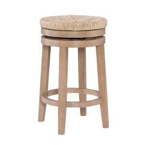 Introducing the Noah 25.5" Backless Counter Stool, now available in a sleek and sophisticated natural finish. Elevate your living space with this timeless piece that seamlessly blends modern aesthetics with a touch of bold elegance. The natural handwoven seagrass seat, swiveling a full 360 degrees, not only ensures comfort but also brings a sense of versatility to your home. Crafted on a sturdy rubberwood base painted in classic natural brown, this counter stool promises both durability and stability, making it an ideal addition to various settings, from contemporary kitchens to industrial-inspired bar areas.