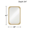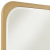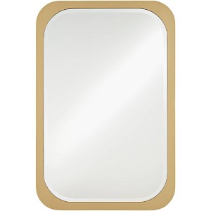 Designed by Noble Park, this charming modern rectangular wall mirror lends just the right hint of vintage character. Rounded corners and a beveled edge add depth to the glass, perfect for a hall, entry, or living room. A gold finish frame echoes the rounded profile of the glass, delivering a glam final touch to a hand-made mirror.