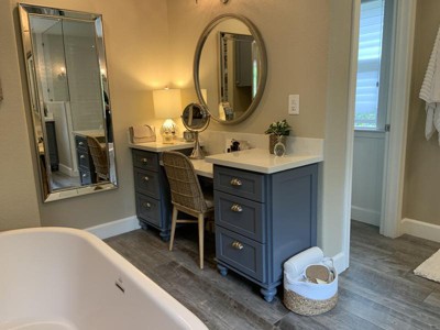 When I saw it online I knew this was the mirror for our newly remodeled bathroom. It's the perfect silver color, size and the round beaded trim completed the look we wanted! It's stylish and fresh looking!