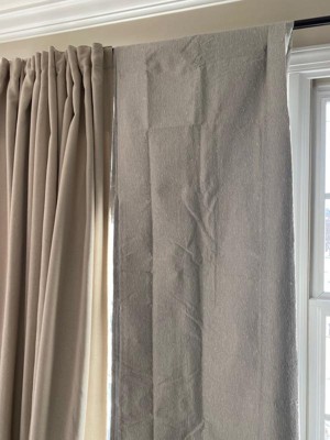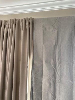 [This review was collected as part of a promotion.] I was very pleasantly surprised at the light blocking capabilities of these curtains. The cream color has a beautiful soft texture to it and it lightens up my bedroom vs the heavy dark ones I replaced. The opposite side of the curtains are a smooth white material that does the light blocking. Super easy to install on my existing rod and the two panels meet and stay together effectively to eliminate any light bleed through. High quality materials and effective I love these curtains!