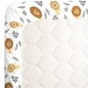 Your little one will sleep soundly on this crib sheet's cozy surface Lion design. Features a multi print of lions in colors of yellow, brown, gray and white, making this microfiber fitted crib sheet perfect for almost any baby's nursery! Measures 52" x 28" x 8" with elastic all the way around for a perfectly snug fit on any standard size crib mattress.