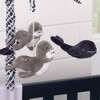 The NoJo Seas The Day Musical Mobile features whales and sea lions. The mobile arm has a coordinating navy hatched print sleeve. Plays Brahms lullaby. Fits onto most standard and convertible cribs. This fun Musical Mobile coordinates with a full line of Little Love by NoJo Seas The Day Nursery Collection.