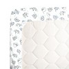 Your little one will sleep soundly on this crib sheet's cozy surface and adorable sloth design. Shades of grey and white with mint accents make this microfiber fitted crib sheet perfect for almost any nursery. Measures 52 x 28 x 8" with elastic all the way around for a perfectly snug fit on any standard size crib mattress.