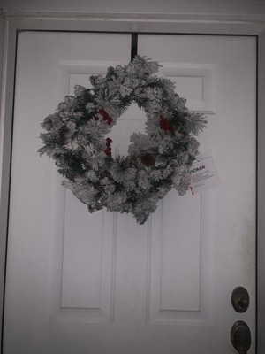 - BRING IN HOLIDAY CHEER: This holiday wreath is decorated with artificial snow, berries, and pinecones for instant holiday cheer in any space