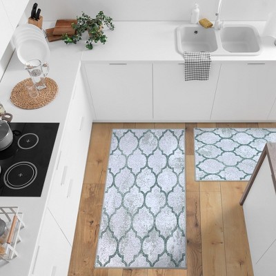 Sussexhome Non Skid Washable Kitchen Runner Rugs Set of 2 - Multipurpose Low Pile Area Rugs for Laundry Room, Entryway, Bathroom - Set of 44 x 24 and 31.5 x 20 Inches Throw Mats