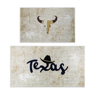 Non Skid Washable Kitchen Runner Rug Set of 2 - 70 % Cotton Kitchen Floor Mat[Fascino-Beige]