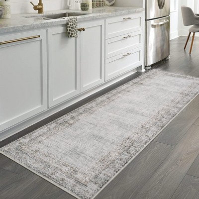 2x6 Machine Washable Runner Rug, Non-Slip Kitchen Rug, Low Pile Modern Bedside Rug, Foldable Pearl Velvet Soft Carpet for Entryway, Bathroom, Laundry