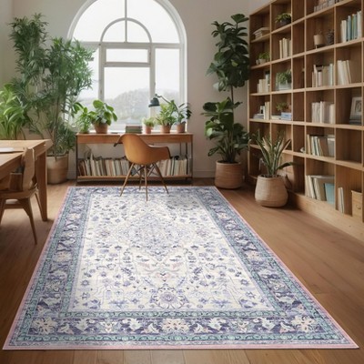 Area Rugs for Living Room Non Slip Non Sedding Machine Washable Rug Vintage Floral Medallion Low Pile Foldable Carpet for Bedroom Dining Room
