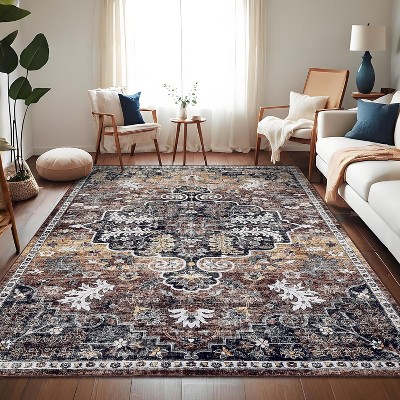 Non-Slip Washable Area Rug - Low Pile, Western Geometric Pattern for Living Room, Bedroom, Nursery, and Entryway