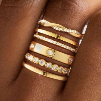 Stackable Rings Set: This thumb ring set includes 5 gold rings with delicate designs such as simple round rings, minimalist rings, classic twisted rings and cubic zirconia rings for women. Thin band rings exude classic elegance and sparkling cubic zirconia adds a dazzling glow—ideal for daily wear and special occasions