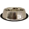 - The Non-Tip Stainless Steel Bowl will help prevent messy spills. It has a wide rubber-edged base that is designed to prevent movement and spillage during feeding. Stainless Steel is rust and scratch resistant. Please note, all measurements are approximate. Supplier may vary.