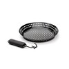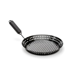 Time to flip out in front of your guests with this non-stick number. The PTFE/PFOA free non-stick coating and removable soft grip handle make for an easy clean-up and provides durability. The skillet's perforated grilling surface ensures consistent cooking and enhances food's natural flavors, while allowing you to grill veggies and shrimp without skewers and without fear of falling through the grates. The featured folding handle permits the skillet to be left on the grill top while cooking. Grill to perfection with this versatile skillet, built to impress.