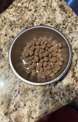 Our pups were 50-50 on whether they loved or simply tolerated this food. Our larger 60 lb dalmatian-rottweiler mix had no problems with it, whereas our 30 lb terrier mix was a little more selective with how much she enjoyed it. I would say the pellets are on the larger size and could be a challenge for dogs with more sensitive teeth, or smaller mouths. The package ran out quickly based on the serving sizes recommended on the bag (we feed each dog twice per day), but your mileage will vary based on feeding habits.