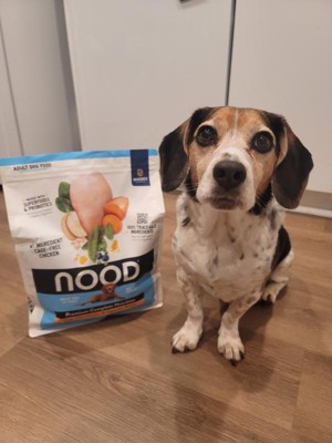 I've been giving my Beagle, Bagel, this NOOD chicken-flavored food for a few weeks now. Let me tell you, it's been a lifesaver! Bagel's always had a bit of itchy skin and allergies, and it's been driving him (and me) crazy. But since we switched to this stuff, his scratching has way decreased. I can actually see his coat looking healthier and shinier. The kibble itself is pretty small, which is good for Bagel, because he's a little picky eater. And the chicken flavor seems to be a hit he gobbles it up every time. I think a big part of the improvement is the quality of the ingredients. NOOD uses real chicken as the first ingredient, which is a great source of protein. Plus, it contains superfoods like spinach and blueberries, which are packed with nutrients. I'd highly recommend NOOD Pet Food to anyone with a dog who has skin issues or allergies. It's been a game-changer for Bagel, and I can see why it's so popular.