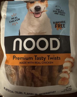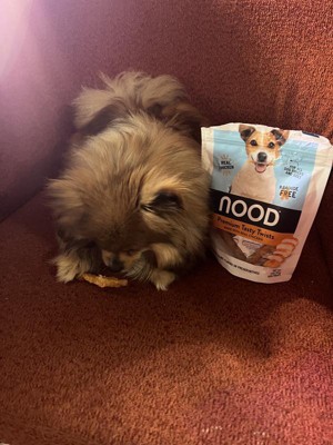 These chicken flavor dog treats from Nood were a hit with my dog. Although it could be hard to chew at times, I'd break them into smaller pieces and he was happily enjoying them. He would ask for a treat after he did sometbing funny or came back in from potty break. Will definitely get them again