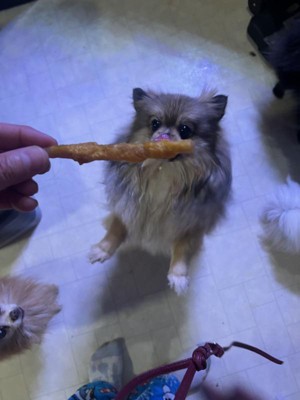 I have an extremely EXTREMELY picky dog, finding her treats and food is a headache, so once we find one she likes we buy it until they stop selling it. We decided to try these because they were cheap enough if she didn’t like them, no big deal. Thankfully, she LOVED them. we give her one twice a day, after her pills and eyedrops. She is always so excited to grab one and run off with it.