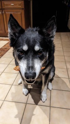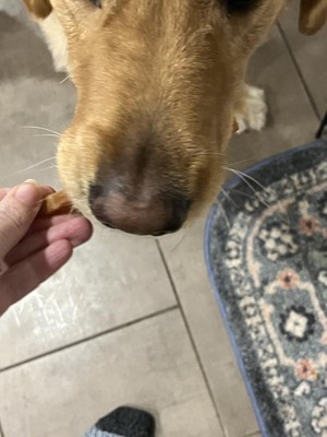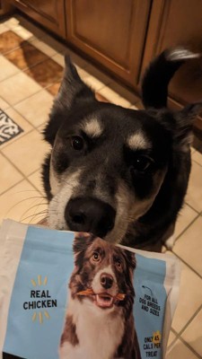 My chocolate Labrador absolutely loves these! It makes me feel good too that they are real ingredients and no artificial preservatives. I don’t feel guilty giving these to her multiple times a day. Great treats!