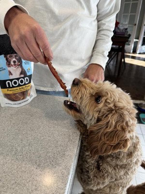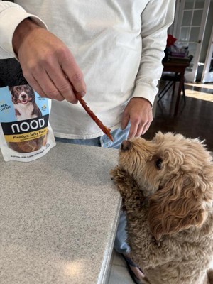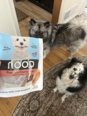 The Nood brand chicken-flavored treats are a great find! I have a 7-pound Minpin with a sensitive stomach, and she has no issues eating these treats. As an owner, I also appreciate that they don't contain any rawhide. My dog loved them so much that I bought more. Highly recommend! “I received these products for free from the Hey, Bullseye™ sampling program in exchange for my honest review.”
