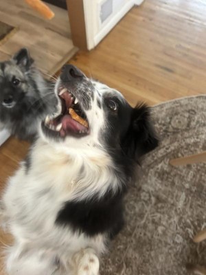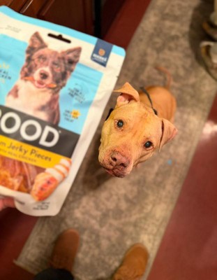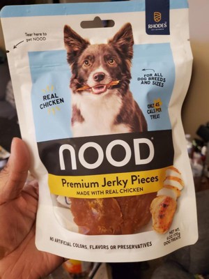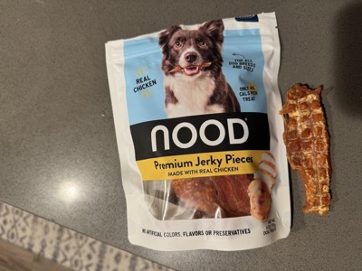 My Border Collie really likes these Nood chicken treats. I was not familiar with the Nood brand prior to getting them via the Hey, Bullseye promotion. I was a little concerned the treats would be difficult for him to chew/eat because they're on the tough side. Anytime we give our dog something big to eat we always make sure to keep an eye on him to make sure he doesn't choke. The treats are a little big, but perfectly sized to keep them busy for a few minutes. He seemed to really like the flavor and the chewiness of the treat was actually just right for him, so my concerns were eliminated. After he finished with one treat, he begged for another. One other thing I really like about these treats is they do not leave any harsh smell or residue on your hands. They are nice and dry, and just barely have a scent. I will definitely pick up some more of these.