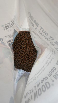 Nice size for small bite dog food, and the ingredients are clearly listed on the bag which I found helpful. Both my small and large dogs happily ate the food, even though one of them is traditionally quite picky! The bag was resealable