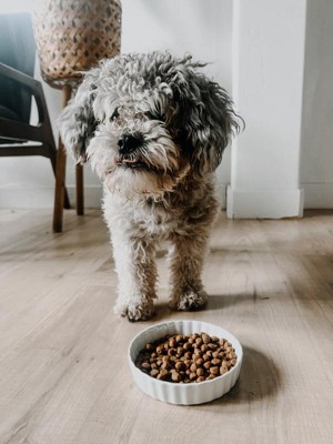 My dog is 5lbs and I have a hard time finding the perfect food for him. The nood is bite sized pieces that seem to be made for my little guy. He wags his tail when I fill his dish and never leaves it empty so I can safely say he enjoys the flavor. As for me I love that the number 1 ingredient is chicken it makes me feel good as a pet parent to feed my dog high quality food.